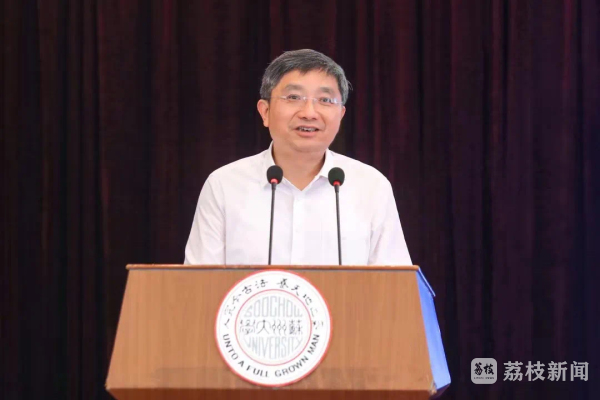 揭牌仪式上,苏州大学党委书记江涌代表苏州大学向一直以来关心支持苏州大学特别是商学院建设发展的各位领导表示感谢,并简要介绍了苏州大学和商学院的发展情况。他表示,省财政厅、省教育厅支持苏州大学建设高水平特色商学院,是探索“建设中国特色、世界一流大学新路”的积极实践和主动作为,也是立足新发展阶段、贯彻新发展理念、服务构建新发展格局的有力举措。这既是对百年来苏州大学商科教育发展的光荣传承,也是苏州大学商学院建设发展史上又一关键里程碑。学校将以三方共建商学院为重要契机,深入学习贯彻习近平新时代中国特色社会主义思想,打造立足江苏实践、扎根中国大地、面向世界前沿的高素质商科人才培养基地、数字经济与智能管理研究高地、财税金融领域的国家级高端智库平台。相信在省财政厅、省教育厅的关心推动下,在苏大师生的共同努力下,一定能加快建成国内领先、有国际影响力的高水平特色商学院,为谱写“强富美高”新江苏现代化建设新篇章作出新的更大贡献,以实际行动迎接党的二十大胜利召开。