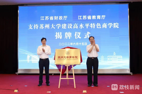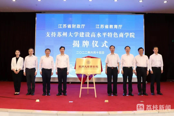 记者今天(17日)从苏州大学了解到,江苏省财政厅、江苏省教育厅支持苏州大学建设高水平特色商学院揭牌仪式日前举行。