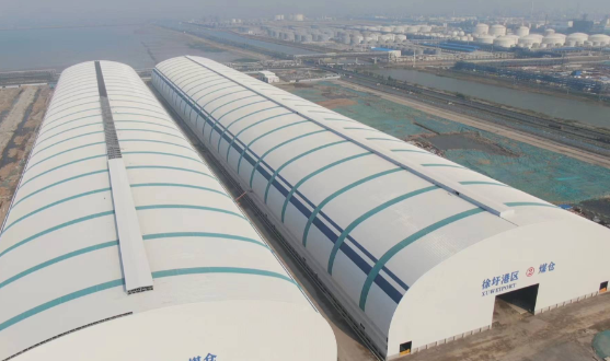 连云港现代煤炭供应链服务示范基地工程项目生产经理 付强 :我们这个煤罩棚是全省煤炭堆存基地中单体规模最大的堆煤罩棚,可一次性堆存煤炭约100万吨。