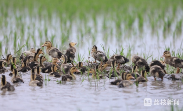 近年来,江苏句容大力发展生态农业,利用“种养结合、循环利用、生态养殖”模式,探索发展“稻鸭共作”复合型生态农业,不断提高水稻种植技术和生态鸭养殖技术,今年全市采用稻鸭共作模式的水稻面积约1万亩,按照每亩水稻田放鸭10-15只计算,全市或将有10多万只“打工鸭”进入稻田“打工”,为农户增收出一份力。