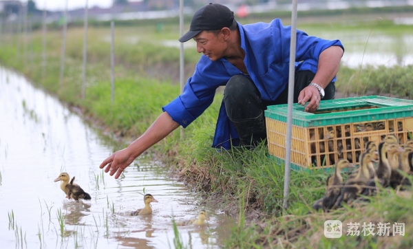 在现场,农户们正忙着将一只只雏鸭放入稻田中,从现在开始这批“打工鸭”就成为了这片稻田的特殊“管理员”。农场相关负责人杜诸侯介绍,稻鸭共作的主要原理是利用鸭旺盛的杂食性和不间断的活动,为水稻生产“打工”。“鸭子在里面进行吃虫、除草,整个秧苗成长过程中,鸭子在里面跑的过程中,它会把这个水搅浑之后,太阳照射不到地面,没办法光合作用,所以草就长不上来了。”