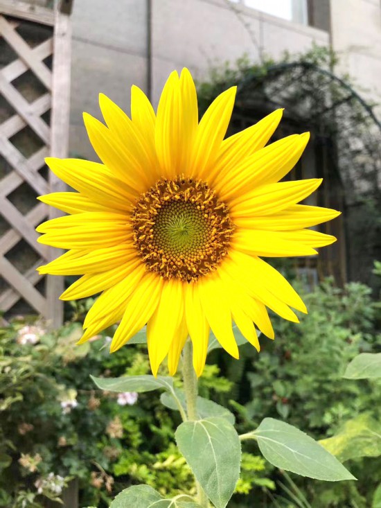 在723所家属大院里,王佳艳种了几十棵向日葵。此时正值向日葵花开,吸引了两位爱花的老先生前来观赏,一位是喜爱花卉写生的吴有海,另一位是擅长摄影的刘洪亮。“这一棵棵向日葵黄灿灿的,在门前长着真讨喜!”吴有海笑着说,自己走街串巷寻找花卉写生,经常看到不少居民在家门口空地种上三五棵向日葵。幽深曲折的小巷,因为它们变得鲜亮起来。