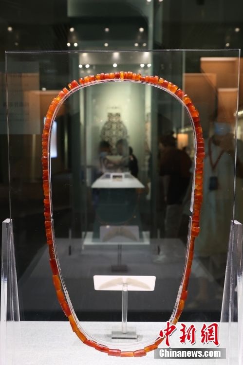 图为展出的玛瑙串饰。