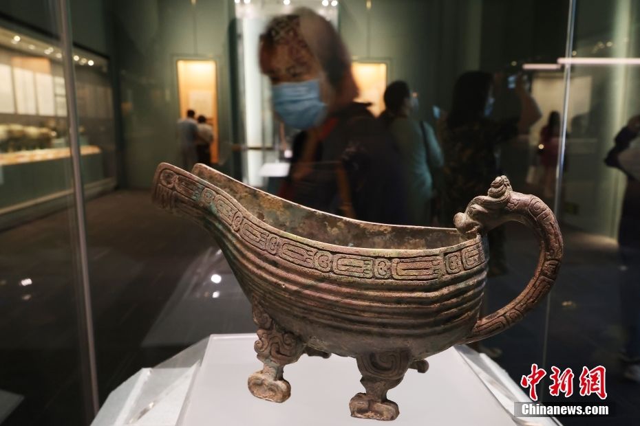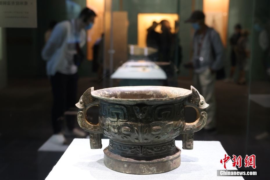 图为展出的兽面纹敞口铜簋。