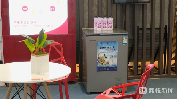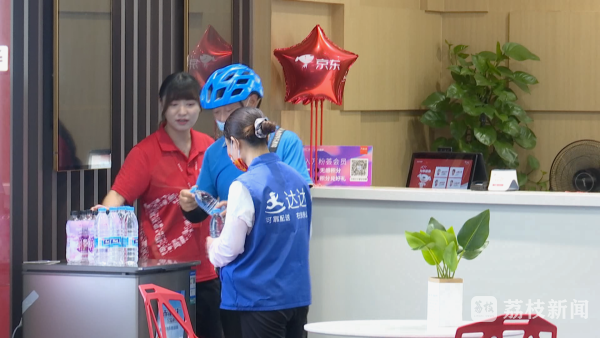 记者在该电器河西店的“城市清凉侠”公益服务点看到,李先生快递过来的水,已经整整齐齐地摆在了冰柜上,供有需要的户外工作者们免费领取。