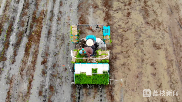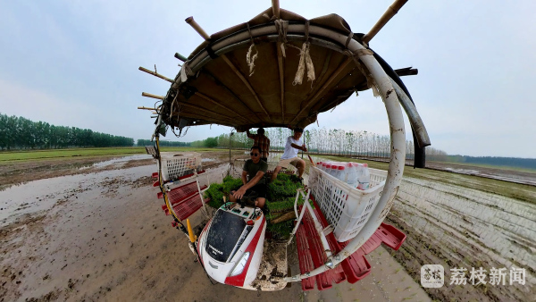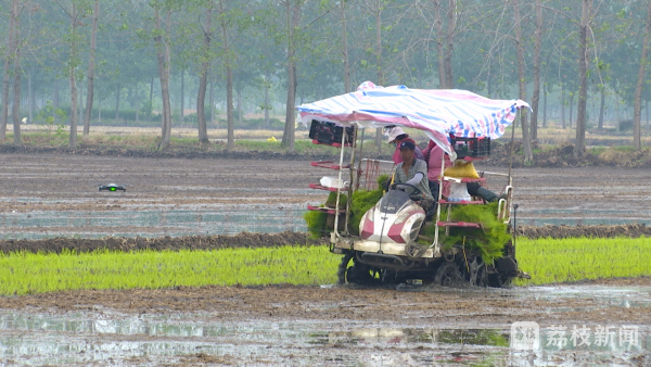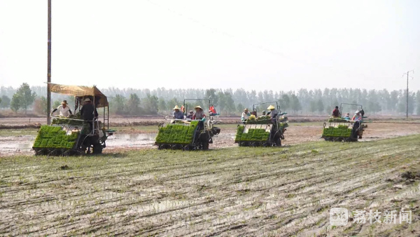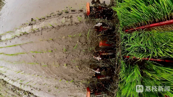 6月27日,记者在东海县平明镇的水稻田里看到,几台插秧机来回穿梭,不停奔忙着,种粮大户王洪业趁着降雨间隙,抓紧时间进行插秧。他告诉记者,夏收以后,田地一直处于干旱状态,近期的雨水天气为栽插秧提供了极大的便利,“这场雨给我们机插秧工作带来很多便利,首先我们的稻苗进入大田以后,会在比较合适的温度下进行缓苗生长,不会受高温影响。再就是我们机械作业的时候,机械不会因为泥土干燥进行陷轮,可以达到一个比较适合的栽插工作条件。我们每天安排40多台插秧机在田间作业,每天的作业量是2000亩左右,大约三四天就可以把整个秧苗插完”。