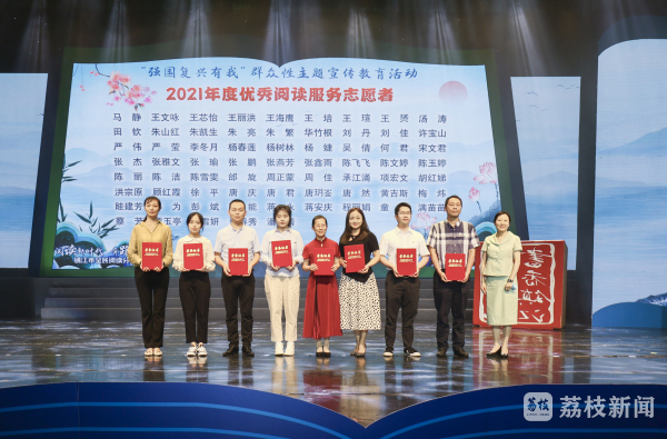活动现场,镇江市领导为2021年度镇江市最美阅读空间、优秀阅读项目、优秀阅读服务志愿者、阅读明星代表颁奖。播放了宣传短片《阅读新时代 奔跑新镇江》、青少年代表阅读分享VCR、群众代表阅读分享VCR;现场表演了《诗话镇江》《翰墨飘香》《跑起来,镇江》《道》等节目。现场还启动了镇江市“强国复兴有我”全民阅读主题活动。