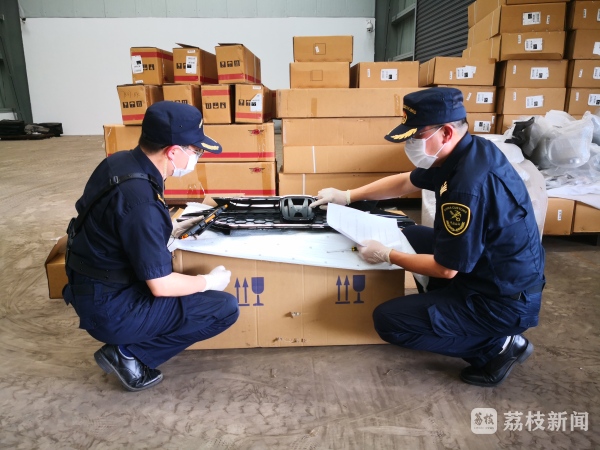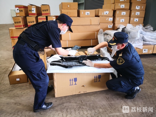 图为:关员查获涉嫌侵权的汽车中网 杨超/摄