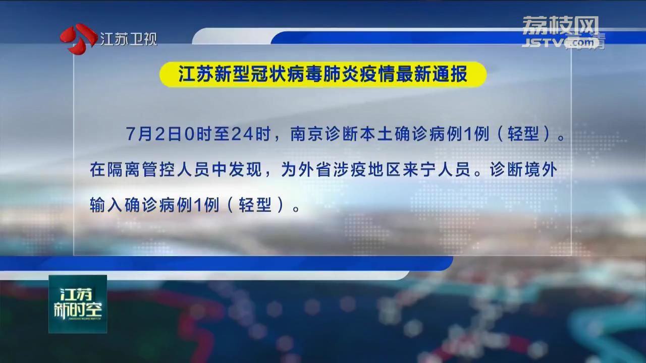 根据江苏省卫健委7月3日发布,7月2日0-24时,南京诊断本土确诊病例1例(轻型)。在隔离管控人员中发现,为外省涉疫地区来宁人员。诊断境外输入确诊病例1例(轻型)。