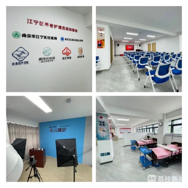 近日,由政府+学校+企业联合举办的南京市江宁区养老护理培训基地建成并开课。基地位于江宁区东山街道永胜路,设置了理论教学区,技能教学区、标准养老病房、直播教室和休闲书吧,可同时为50人开展护理教学。基地不仅为南京江宁全区失能、失智老人家属提供护理技能培训,也承担为全区养老机构、居家养老服务中心护理员开展护理教学的任务。
