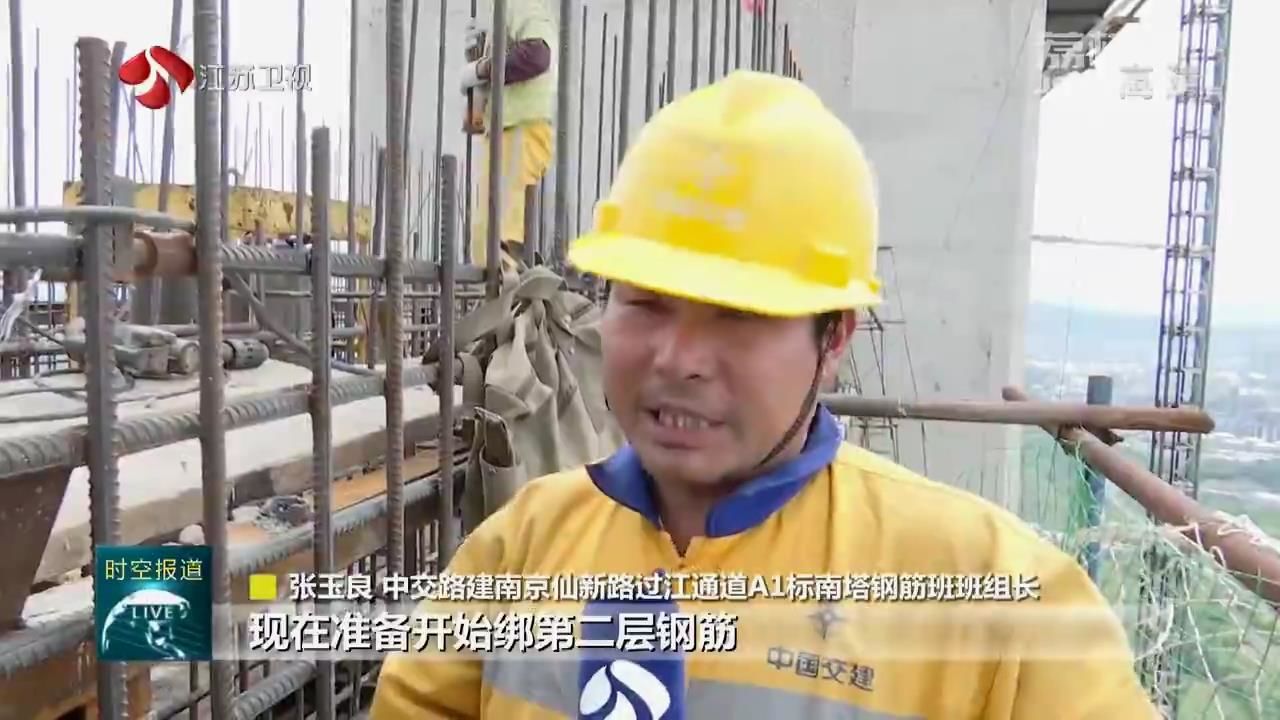 中交路建南京仙新路过江通道A1标南塔钢筋班班组长张玉良说:“第一层混凝土浇筑完了,现在准备开始绑第二层钢筋,我们就是早上上班上得早一点,下午上班上得迟一点、下得迟一点。”