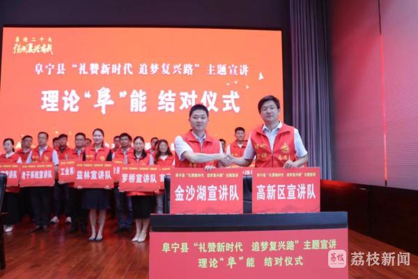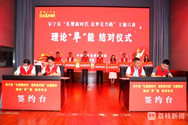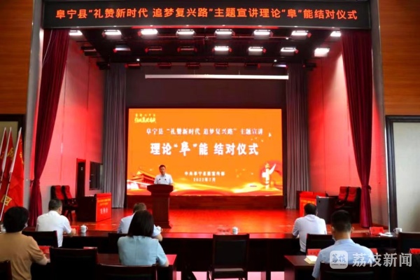 为迎接党的二十大胜利召开营造浓厚氛围,7月4日,盐城阜宁县举办“礼赞新时代、追梦复兴路”主题宣讲“理论‘阜’能结对仪式”,全县200余名党员干部、“百姓名嘴”、理论宣讲志愿者齐聚一堂,共同见证结对共建活动。