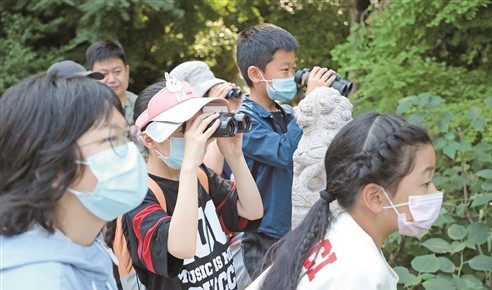 两个小时的观测中,孩子们兴奋地模仿着鸟叫声,意犹未尽但收获颇丰。