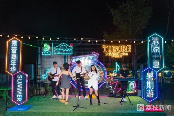 记者注意到,游客有的来自盐城市区,有的来自邻县,还有当地居民。他们有的是结伴而行,有的情侣相伴,还有的举家出游。星辰点缀的夜空下,湖面上吹来阵阵凉风,大家聚在一起品美食、看表演,享受夏夜的美好、露营的愉悦。