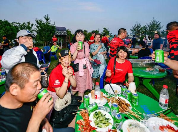 据介绍,为进一步聚集人气,拉动经济复苏,露营地千方百计让游客能享受夜经济带来的"舌尖上的美味"。除了为游客提供烧烤工具和食材外,还入驻了20多个美食摊点,白壳螺蛳、小龙虾等湖鲜美味小吃最受孩子们的喜爱,吃饱了还要求打包带回家吃。