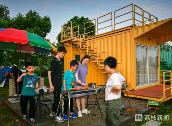 盐城大纵湖绿丘露营地是苏北首家户外露营基地,坐落在大纵湖畔。记者看到,这里风景秀丽,资源独特,营地内植被丰茂、野鸟翔集、碧水环绕、环境怡人,房车、木屋、箱式酒店房、综合服务中心等设施一应俱全。 “2022盐城暑期游暨大纵湖露营嘉年华”开幕式7月1日在大纵湖绿丘营地成功举行,引来了大批游客带着孩子前来体验,畅享夜食、夜娱、夜购、夜游带来的快乐。