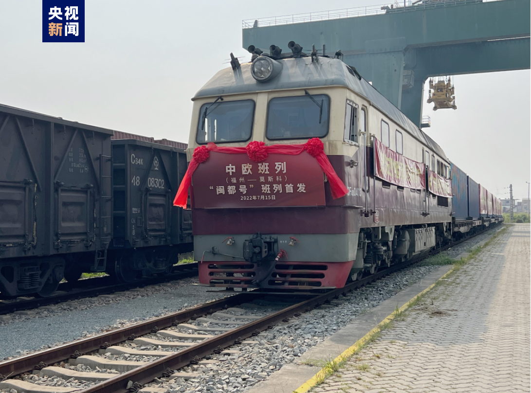 昨天上午,福建福州开行的首列中欧班列“闽都号”从福州江阴港站驶出,开往俄罗斯莫斯科别雷拉斯特站。班列满载50个货柜、100个标箱的婴幼儿用品,全程运行约9900公里,将于16天后直达莫斯科,比海运节省近20天。