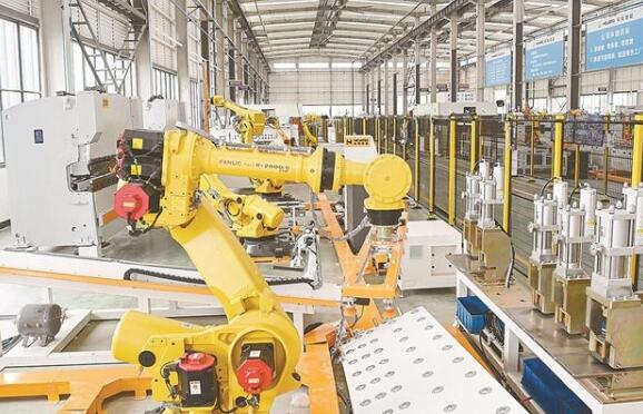 △7月21日上午,盐城和阳集团智能化车间内,自动化机械手臂不断挥舞。该公司全力打造“智能制造示范工厂”,持续推动“智改数转”,抢占数字化赛道,助力电梯部件行业高质量发展。 盐阜大众报报业集团融媒体记者 李思远 摄