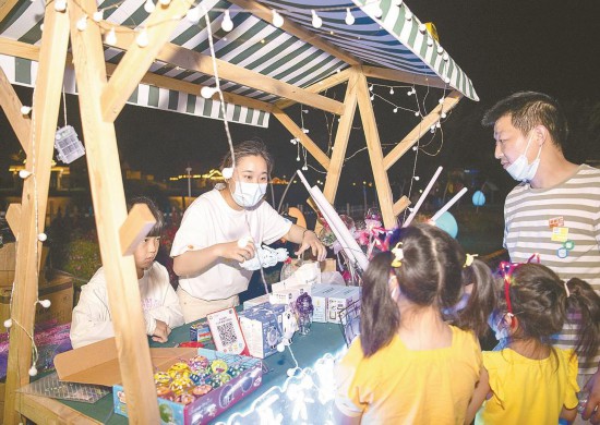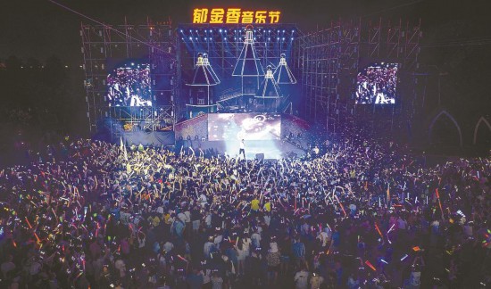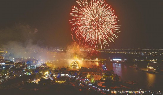 7月23日晚,夜色中的荷兰花海流光溢彩,游人如织。郁金香音乐节现场,各地游客尽情释放活力与激情。“只有爱”浪漫之夜,月夜丽人行、水之灵、光之灵等节目别出心裁,给游客带来视觉享受。夜花海潮集市里,北上海小火锅等各种特色美食香气诱人,吸引众多游客品尝。 记者 杨毅 摄