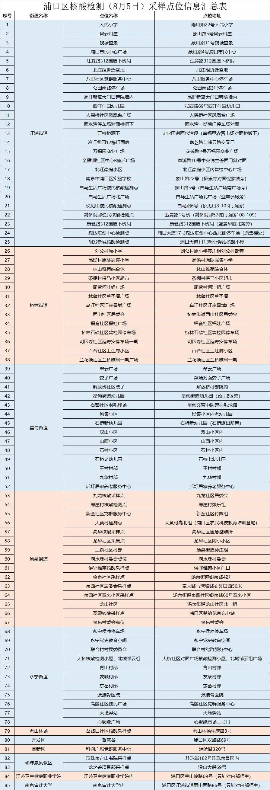 根据当前疫情防控工作需要,为了您的健康和防护安全,浦口区新冠肺炎疫情联防联控工作指挥部决定于8月5日分区域开展核酸检测工作,现将有关事宜通告如下: