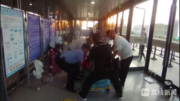民警袁超球在执勤中发现后,在将女子挪到有空调的进站口通道时,女子再次跌倒,民警立即拨打电话给120,将女子情况和所在位置说明,请求医院给予救助。
