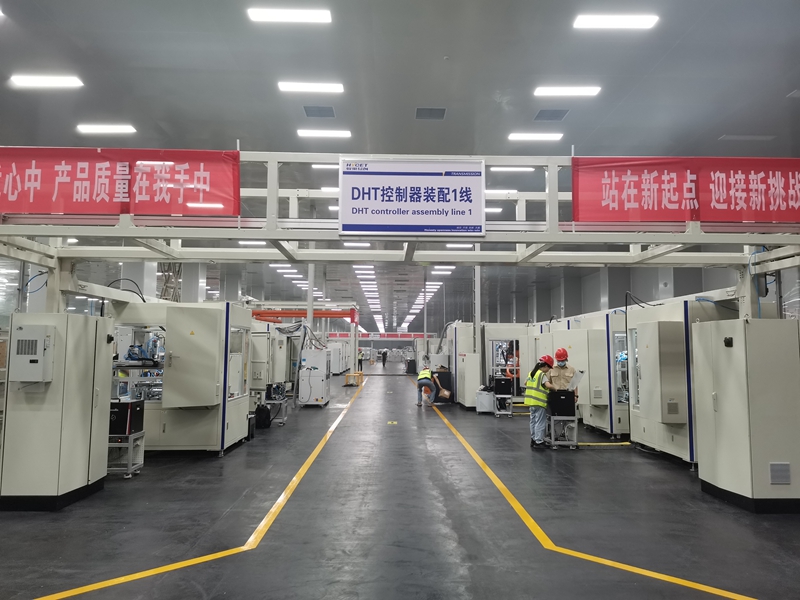 8月1日,记者来到蜂巢传动项目现场看到,多条DHT混动变速箱生产线已经装备完毕,工人们都在进行紧张的设备调试工作。据蜂巢易创科技有限公司技术部负责人郑磊介绍,DHT总装厂房有14万平方米,是目前邳州高新技术开发区单体面积最大的厂房。厂房内布局控制器总装车间、转子生产车间、电枢车间、涂覆车间和混动变速器总装配车间,车间建成后保持10万和30万级的洁净度、恒温恒湿。DHT混动变速箱装配生产线最大特点就是自动化程度高,自动化率高达45.6%,能够极大提高产量,满足市场对该产品旺盛的需求。