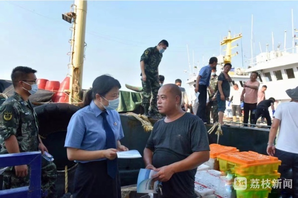 今天(8月16日),记者获悉,南通启东市检察院近日联合海警工作站、市水利局、市农业综合行政执法支队执法人员等启东“江海保护联盟”的成员单位成员,来到国家中心渔港之一吕四渔港,向停泊码头的运销渔船船主、船员和生产群众发放宣传资料。围绕8月1日开捕后的渔业资源捕捞范围、捕捞秩序及渔业生产安全,海洋渔业资源保护、海洋污染防治等进行普法宣传,为渔民答疑解惑。