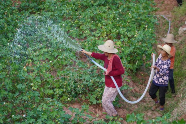 8月17日,湖南省慈利县东岳观镇北平村村民在为农作物浇水。新华社记者 张格 摄