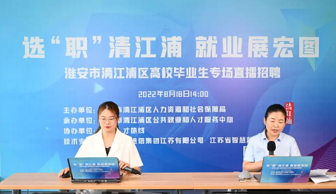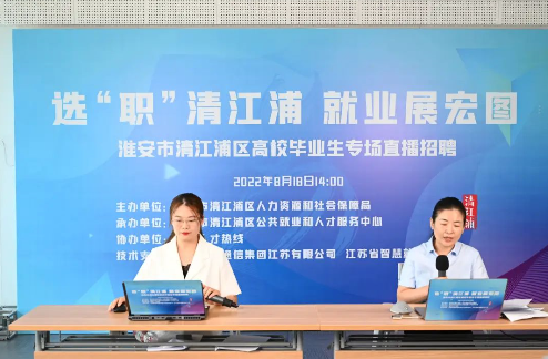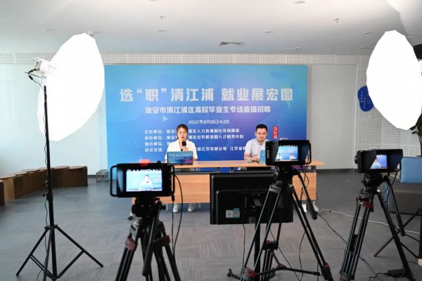 近日,清江浦区人社局举办“选‘职’清江浦 就业展宏图”高校毕业生专场直播招聘会,5家重点用工企业的招聘负责人走进直播间推介自家企业,通过网络直播的形式,向求职者抛出橄榄枝。