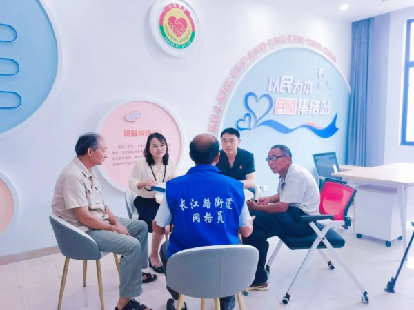 淮阴区长江路街道社会治理指挥中心成立于2020年7月,按照首批市域社会治理现代化试点城市要求,街道对基层审批服务执法力量进行整合,设置“一办六局两中心”,整合审批服务一窗口、综合执法一队伍、基层治理一网格、指挥调度一中心的“1+4”模式,将众多信息平台融入“淮安市社会治理一体化智能平台”,将各条线设置在基层的管理网格整合为一个网格,通过一体化平台上报、分拣和处置,实现“多网合一、一网管理”,集政务服务中心、综治中心、信访接待中心、法律服务中心等“四心合一”,逐步形成以党建引领为核心,以一体化平台为载体,以街道政务服务中心为中枢的基层社会治理新格局。长江路街道党工委委员、政法委员李红梅说:“随着网格管理的推进,网格员的配备以及网格巡逻车的出现,老百姓渐渐找到了组织,找到了反映问题的机构和人员,小事情通过网络员上门走访,就能及时得到解决。”
