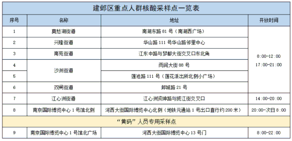 2.建邺区重点人群核酸采样点一览表