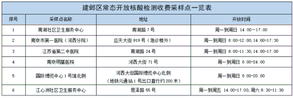 3. 建邺区常态开放核酸检测收费采样点一览表