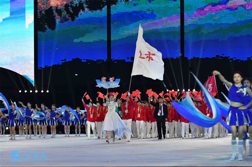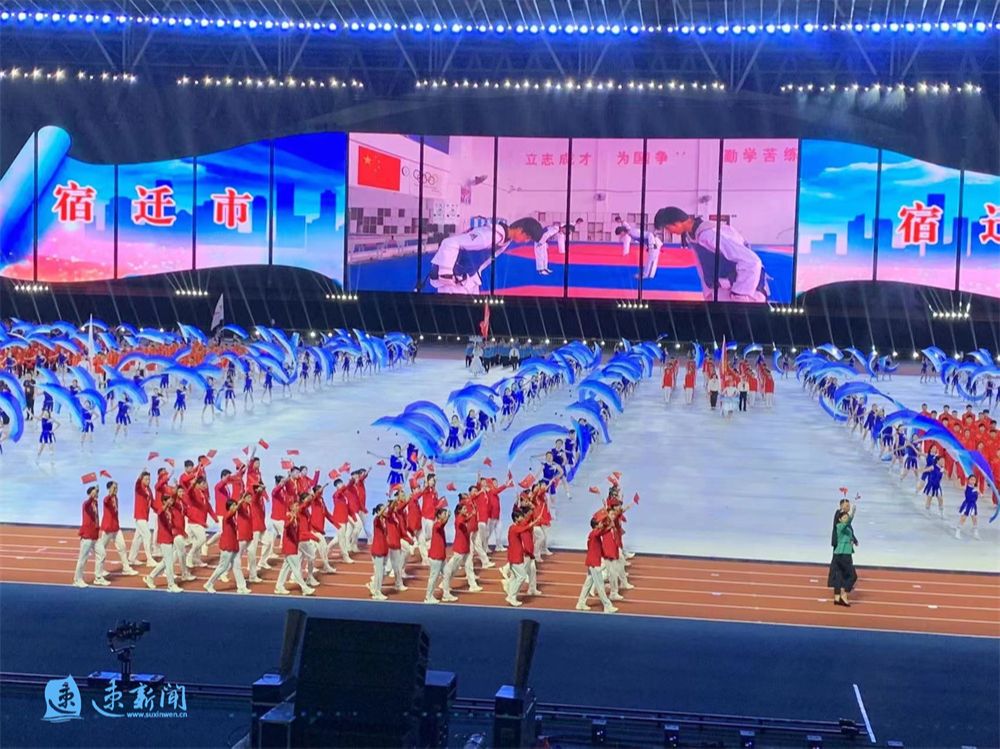 8月28日晚8点20分,宿迁市体育代表团方阵入场。宿迁历史悠久、人文荟萃,是楚霸王项羽的故乡,也是红色革命老区,拥有“项王故里”“中国酒都”“水韵名城”三大名片。伴随着经济社会的全面快速发展,宿迁正奋力奔跑在体育强省建设新的征程上!