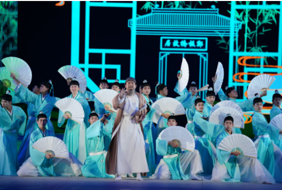 开幕式以《凤仪水城 祥泰江海》为主题,分暖场表演、开幕仪式、文体展演三个部分。其中,文体展演约45分钟,分为《水韵流芳》《勇立潮头》《走在前列》上中下3个篇章。
