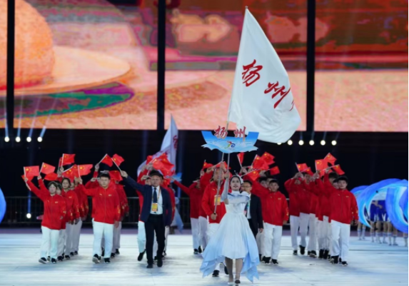 开幕式上,扬州代表团以昂扬的姿态亮相,在接下来的8天内,他们将在竞技场上奋勇拼搏,检验四年训练成果,展现不俗实力。
