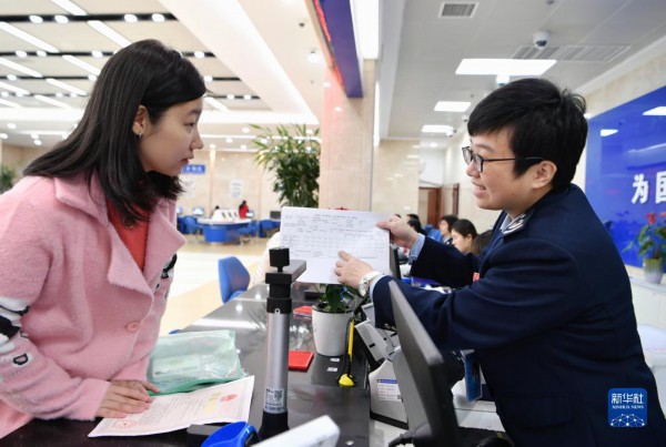 2020年1月21日,工作人员在国家税务总局福州市鼓楼区税务局办税服务大厅为企业财务人员介绍减税申报表的填写方法。新华社记者 魏培全 摄