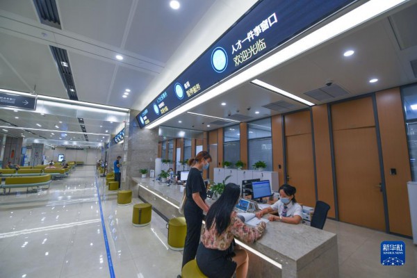 2021年9月29日,市民在杭州临安区行政服务中心的“人才一件事”窗口办理人才分类认定。新华社记者 徐昱 摄