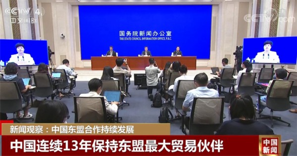 央视网消息:商务部最新数字显示,今年1—7月,中国与东盟贸易额达到5449亿美元,同比增长13.1%,占中国外贸进出口总额的比重提高到15%。中国连续13年保持东盟最大贸易伙伴,东盟作为中国最大贸易伙伴的地位进一步巩固。