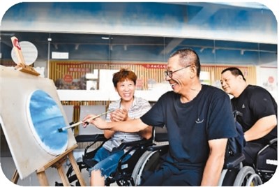 山东省威海市长城爱心大本营2015年起实施“轮椅上的画家梦”助残扶贫公益项目,聘请老师教授油画,并举办残疾人油画展览和拍卖会等活动,帮助残疾人创收增收。新华社记者 郭绪雷摄