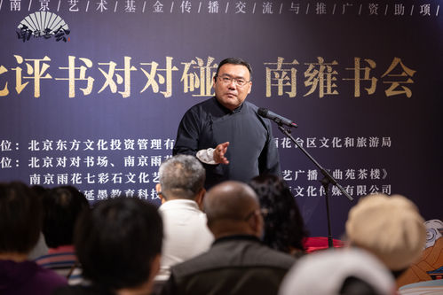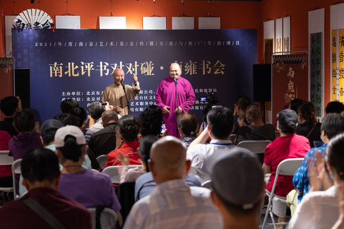 “南北评书对对碰”暨《南雍书会》结项闭幕演出于8月30日在北京举行,当日下午14:30、晚上19:00,专场节目分别在北京美后肆时·景山市民文化中心“美剧场”与北京前门南晓顺胡同7号“韵空间”准时开演。作为南京艺术基金2021年度传播交流与推广资助项目,此次活动由南京市雨花台区文化和旅游局主办,北京对对书场、南京雨花台区文化馆、南京雨花七彩石文化艺术服务中心承办,江苏文艺广播《曲苑茶楼》全程媒体支持,优和时光(北京)文化中心有限公司、北京九州延墨教育科技有限公司、南京乐壹佰文化传媒有限公司、非遗南京评话传承社协办。