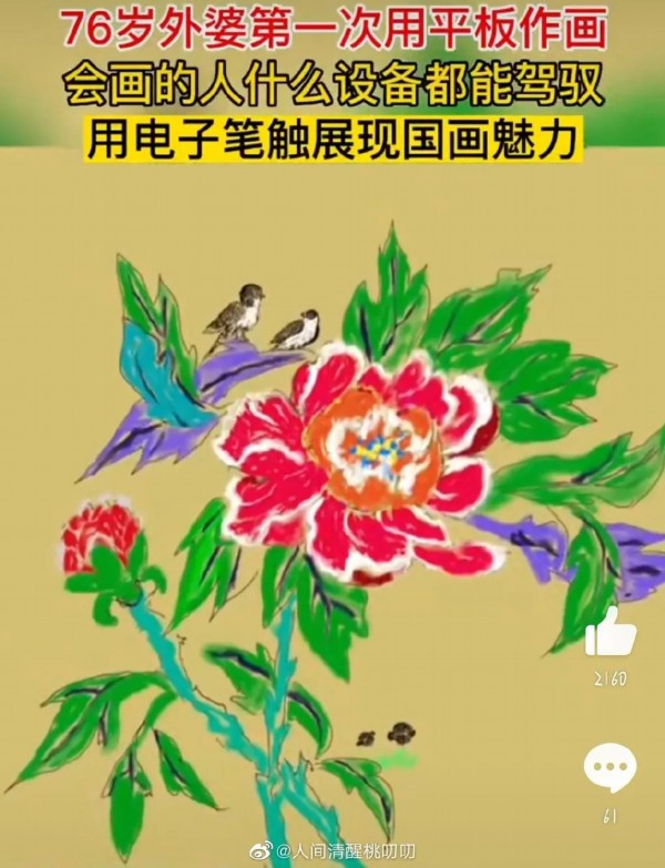 他决定教外婆用平板电脑画画