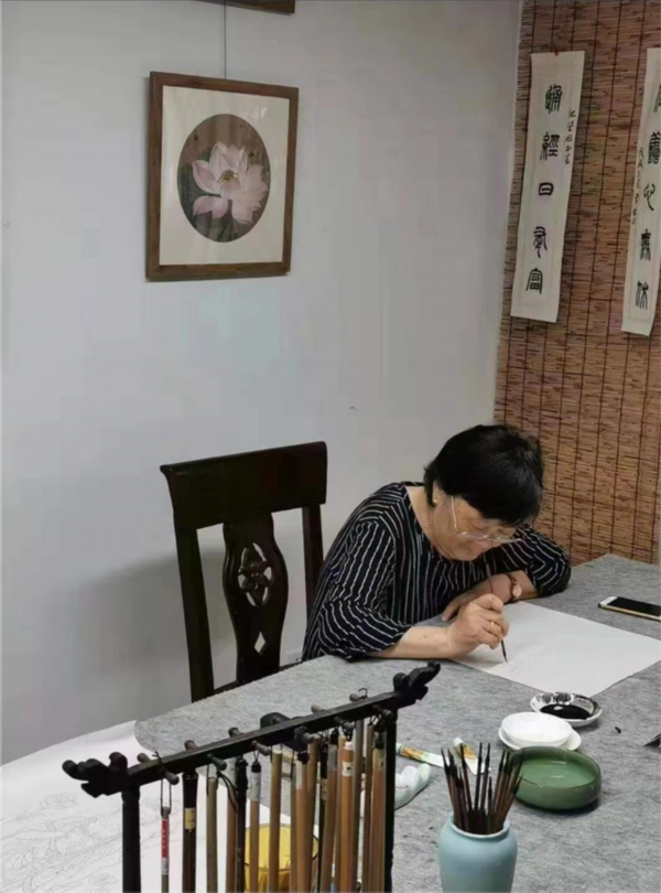 业余时间,她在书房里绘画、刺绣、练书法