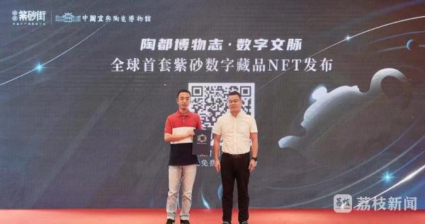 在现场观众的共同见证下,《陶都博物志·数字文脉》正式发布。宜兴陶瓷博物馆副馆长与卓易紫砂街项目现场签订合作协议,宣布双方合作,正式启动陶都数字文脉建设。全球首套数字紫砂藏品同时发布。