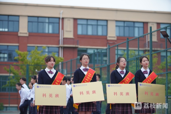 由南京市科利华中学党总支书记高建君为获得“科英班”荣誉的班级授牌,高书记希望,“科英班”能够激励着所有紫金学子不忘初心,做奋发有为的逐梦人,做勇立潮头的筑梦人,做胸怀天下的圆梦人,把爱国情、强国志、报国行融入自己的人生历程,不负时代,不负韶华。