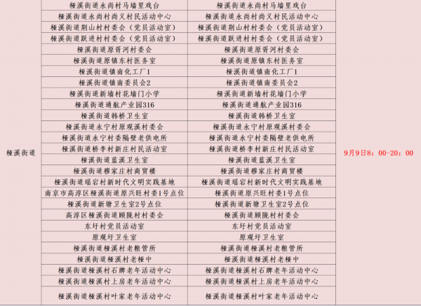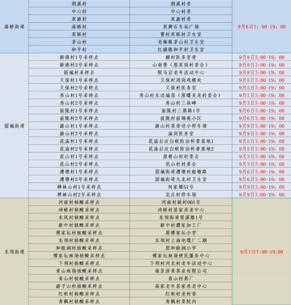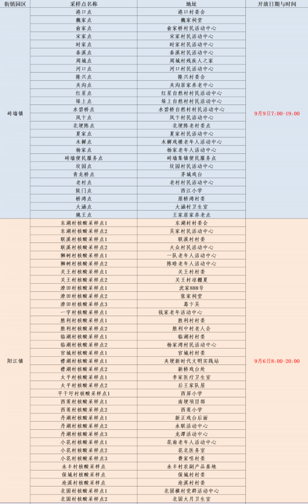 规模性核酸检测采样点信息表