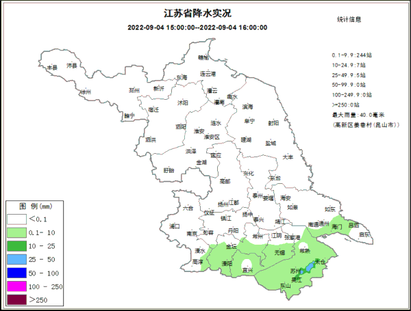 受其影响,04日15时-16时,苏州7个乡镇(街道)的降水量达到20mm以上,南通、苏州2个市的3个乡镇(街道)的极大风达到8级以上。