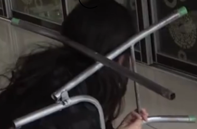 近日,江苏常州一位18岁女孩跟自己弟弟玩耍时,把头伸进折叠椅的凳脚中,不料被牢牢卡住。她的父亲尝试过把凳子往外拔,但无奈卡得较紧无法取下,只得求助消防。消防员赶到后,使用大力剪切割凳脚,不到一分钟,成功将凳子取下。