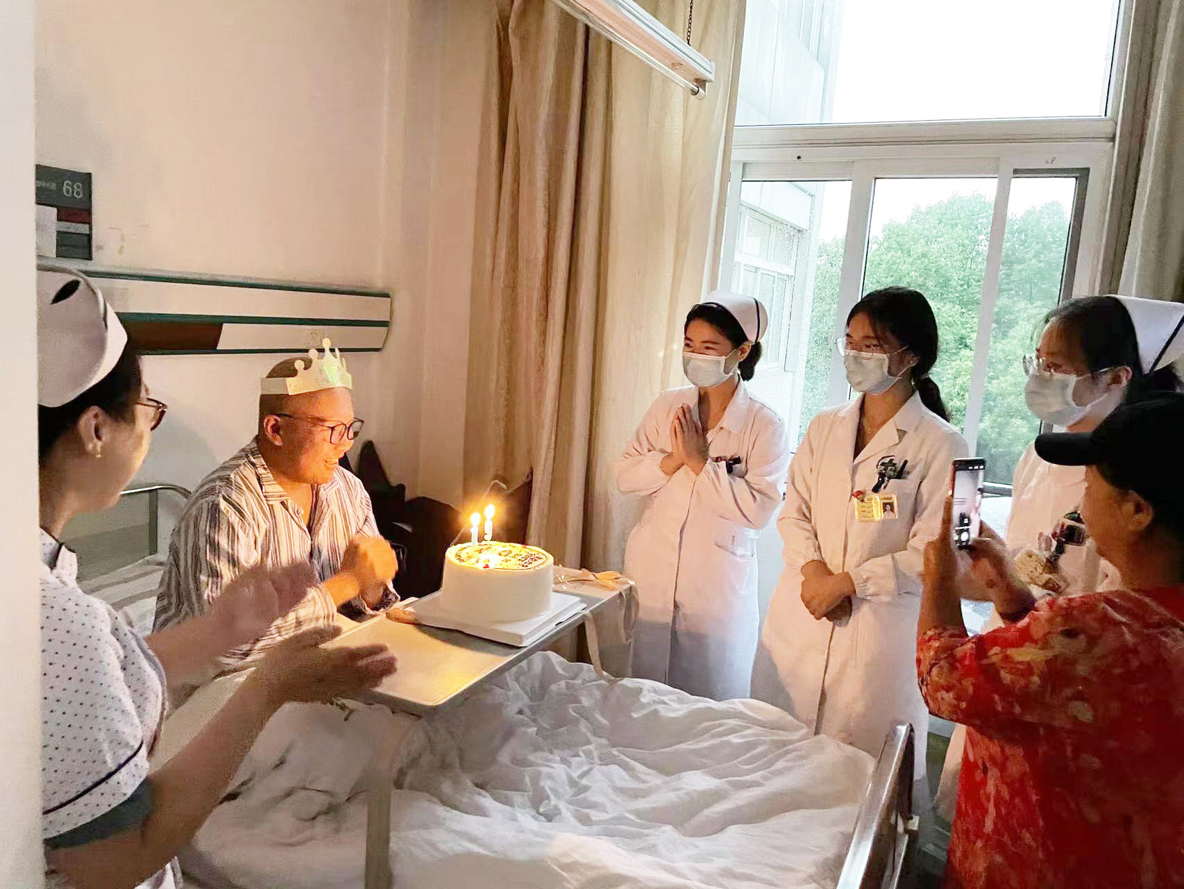 化疗期间,医护人员给王乔珏过生日