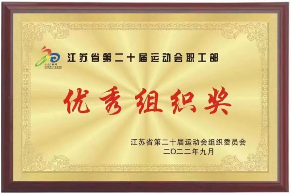 9月5日下午,在江苏省第二十届运动会闭幕式上,淮安市总工会获得江苏省第二十届运动会组织委员会颁发的优秀组织奖。