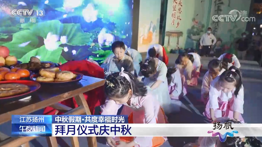 昨天(9月11日),央视《24小时》在“今日头条”版块以《中秋假期 多元消费点亮中秋 开展本地特色文化活动 助力文旅市场恢复》为题报道了扬州人民欢度中秋的热闹场景。随后,央视《午夜新闻》《新闻直播间》再次以《江苏扬州 中秋假期·共度幸福时光 拜月仪式庆中秋》为题聚焦了扬州的中秋拜月活动。